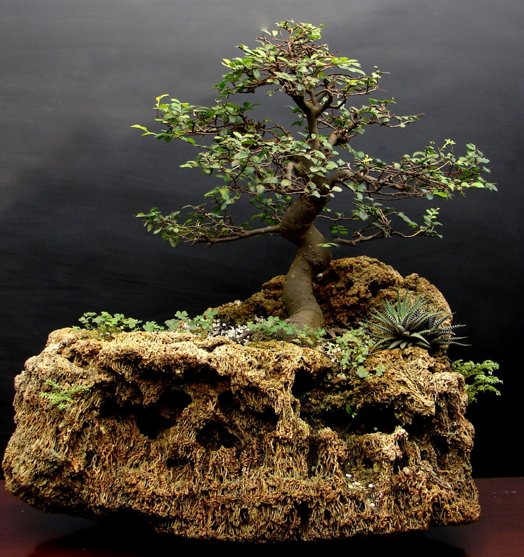 Espécie- Ulmus Estilo-Moyogi – Ereto informal Idade-30 anos Altura- 43cm Comprimento- 64cm OBS: Plantado em pedra cascata, pedra jogada pelo mar de Itaipuaçu.Formação de poliqueta marinha.