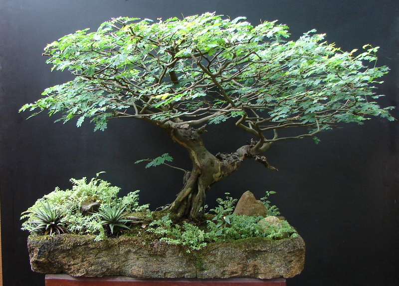 Espécie: Pthecolobium Tortum Estilo:Penjing Idade: 48 anos Altura: 44cm OBS: Vaso em modelagem de concreto celular.