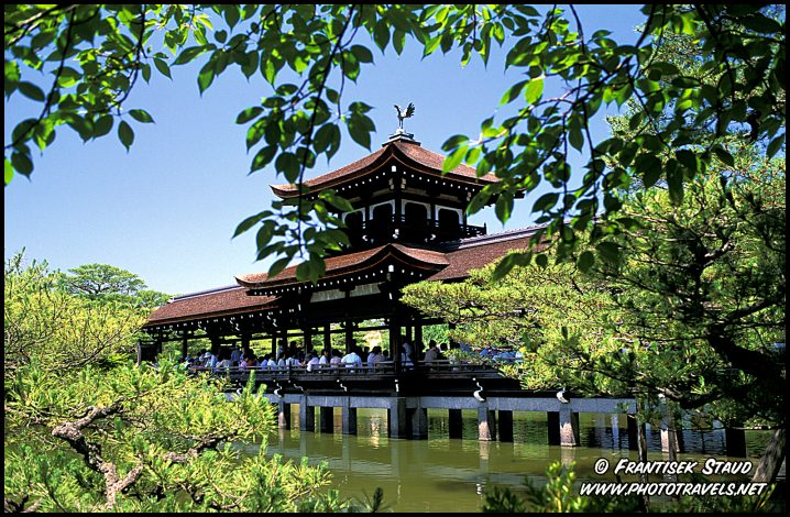 Ponte de madeira no jardim de Jingu Santuário Heian, Kyoto, Japão