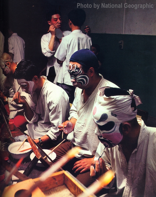 Atores da Tradicional ópera de Peking se maquiando.