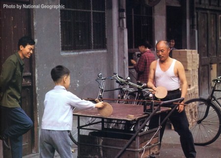 Improvisado jogo de ping pong nas ruas de Pequim.