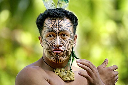172518_1.tif. POLYNESIAN CULTURE6>>>APHOTO7/Jan 23, 2003/DEBORAH BOOKER PHOTOA dancer representing the Maori of New Zealand wears a painted face during a performance of the Parade of Canoes at the Polynesian Cultural Center.