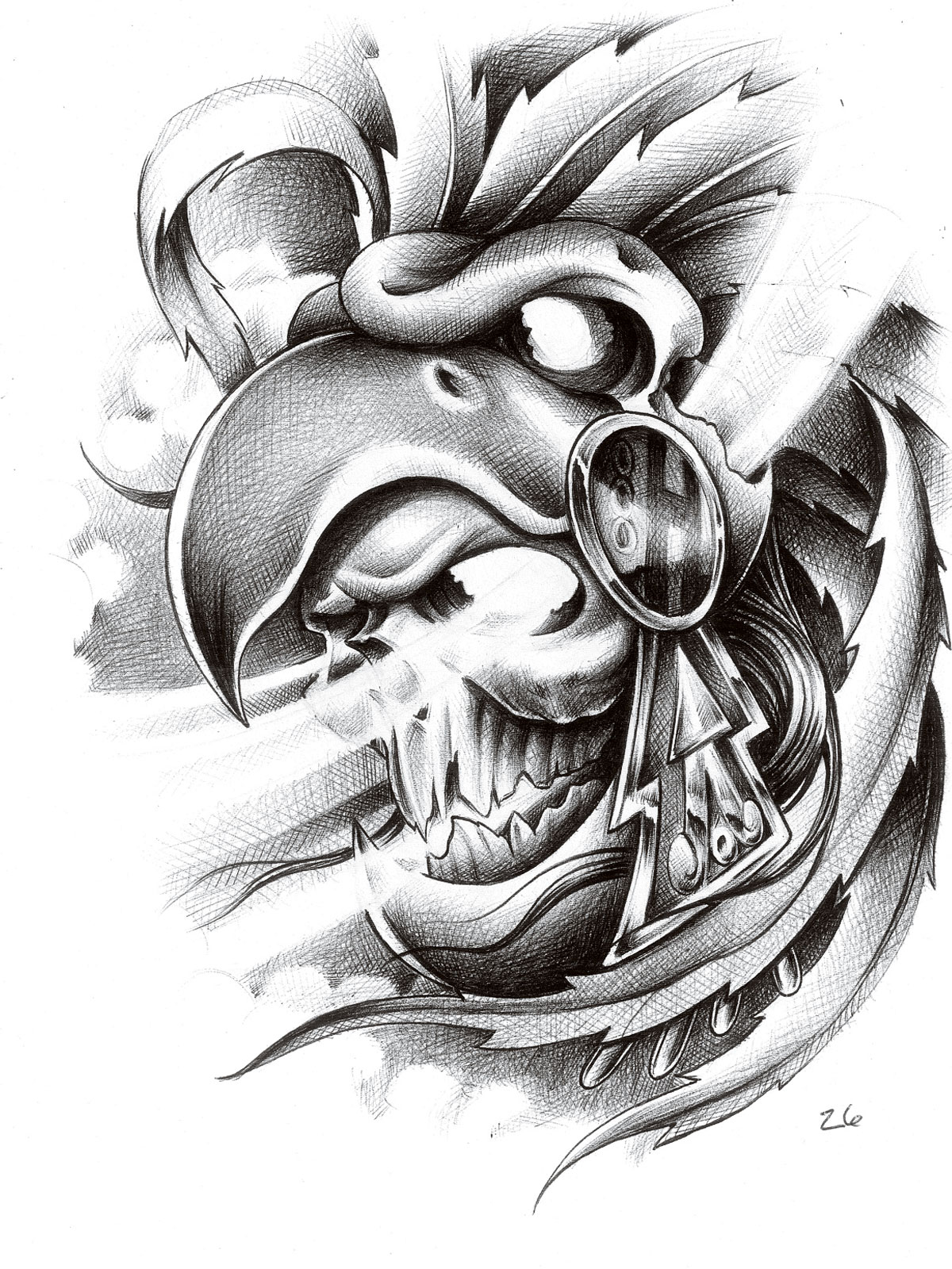 100 desenhos de caveira » 1009_lras_09_o+skull+eagle_helmet