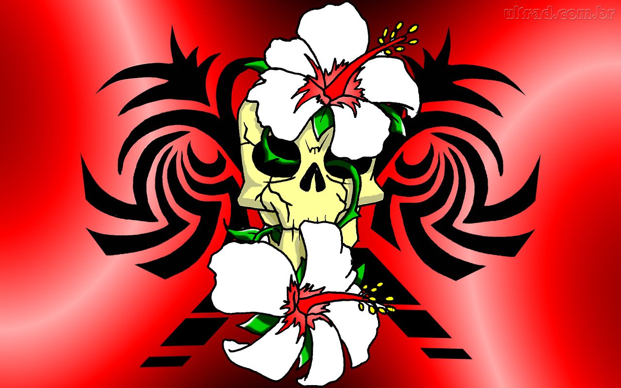 100 desenhos de caveira » 147778_Papel-de-Parede-Caveira-tribal_1280x800