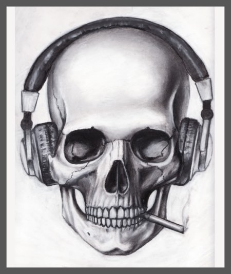 100 desenhos de caveira » Skull_Headphones_Cigarette_by_pleas