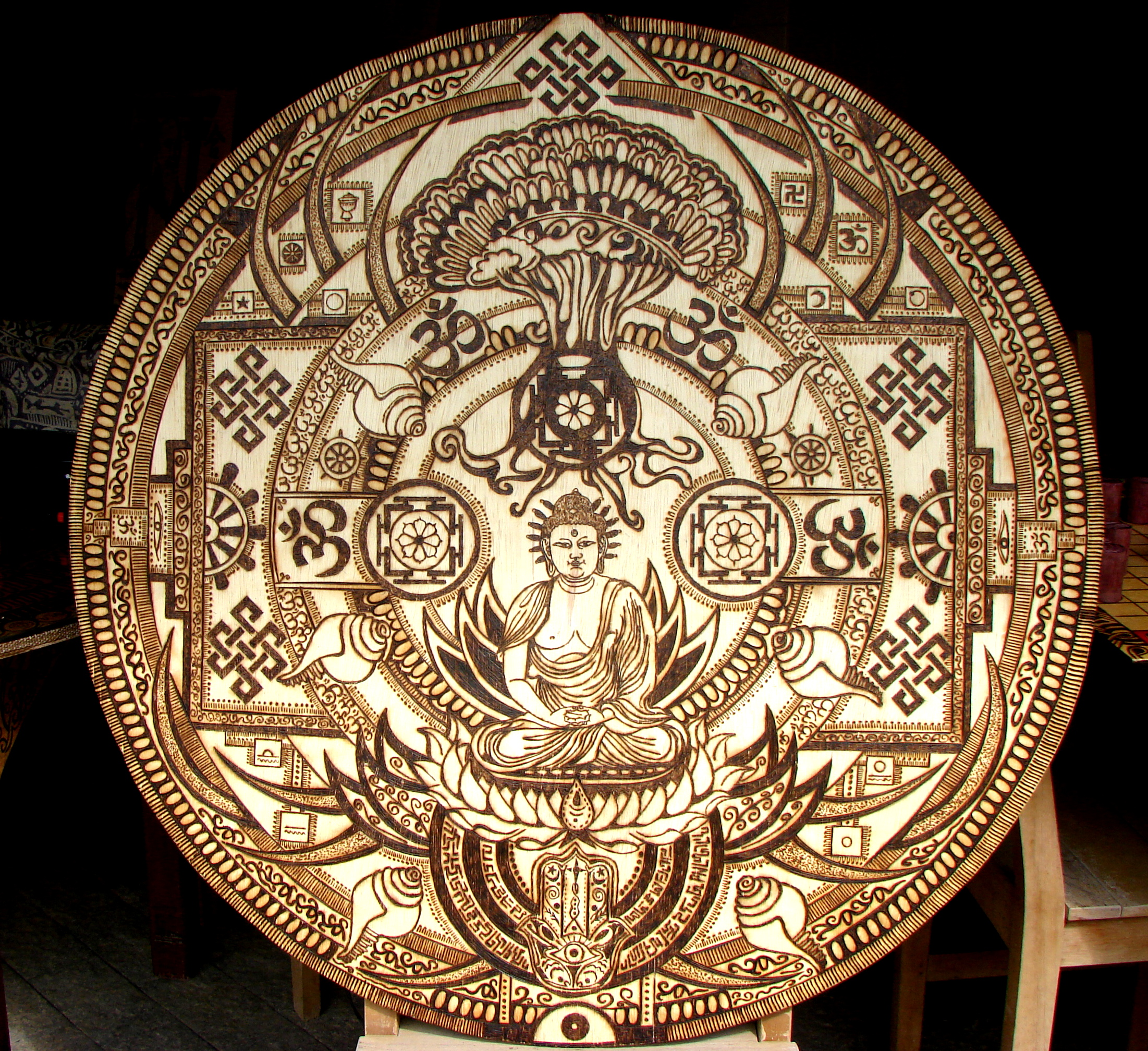 Trabalhos com técnica de Pirogravura.