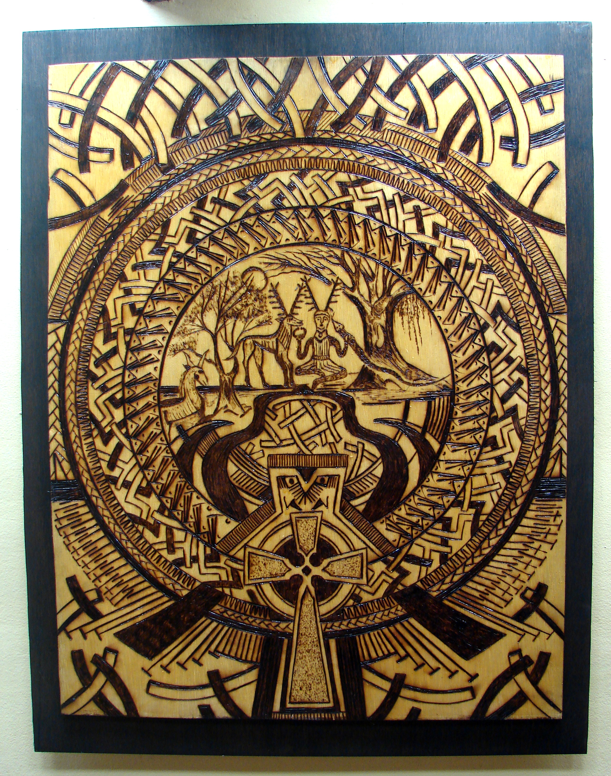 Trabalhos com técnica de Pirogravura.