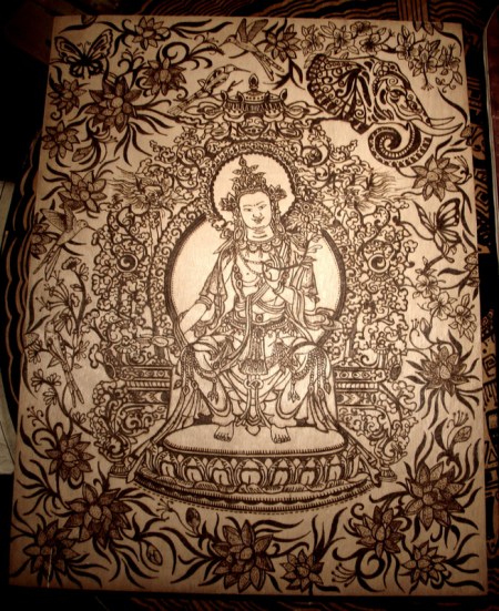 Trabalhos com técnica de Pirogravura.