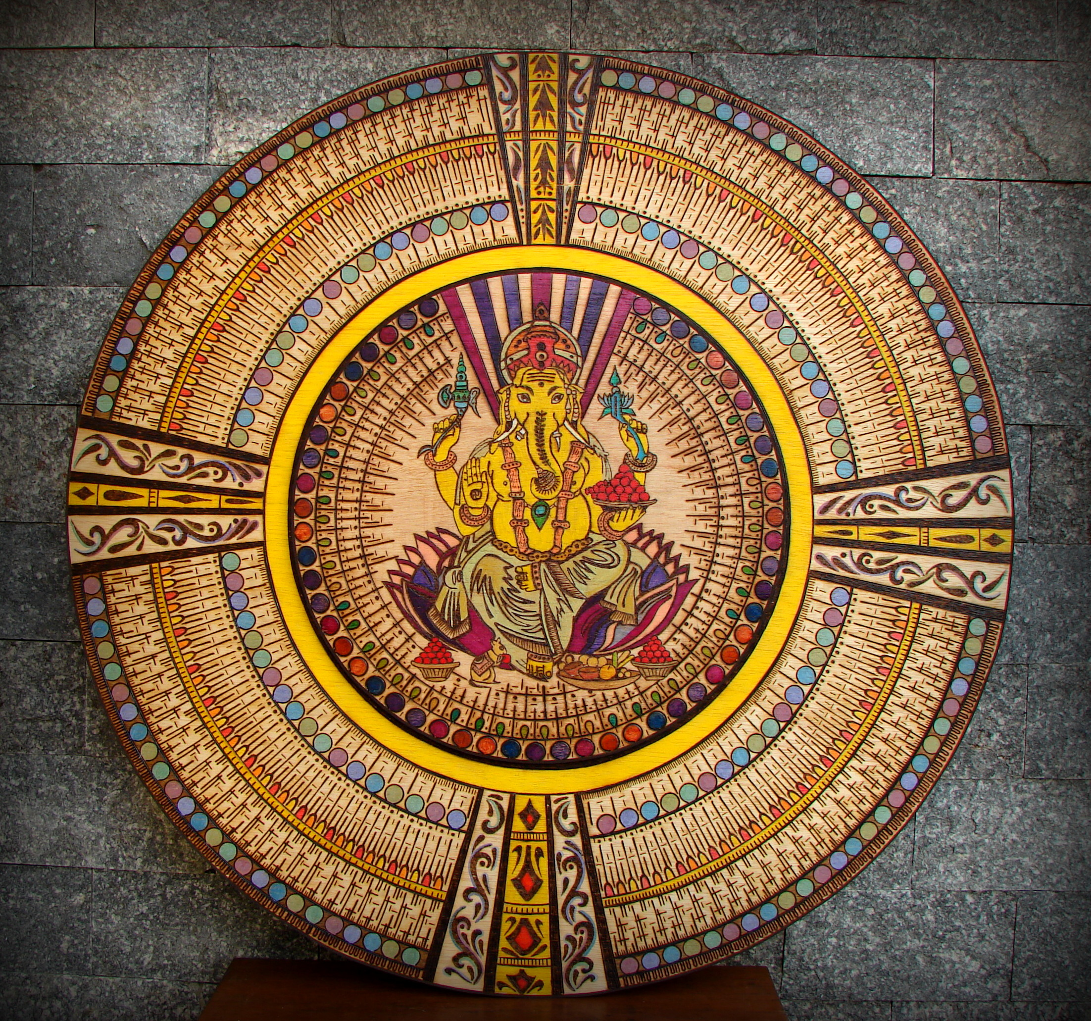 Trabalhos com técnica de Pirogravura.