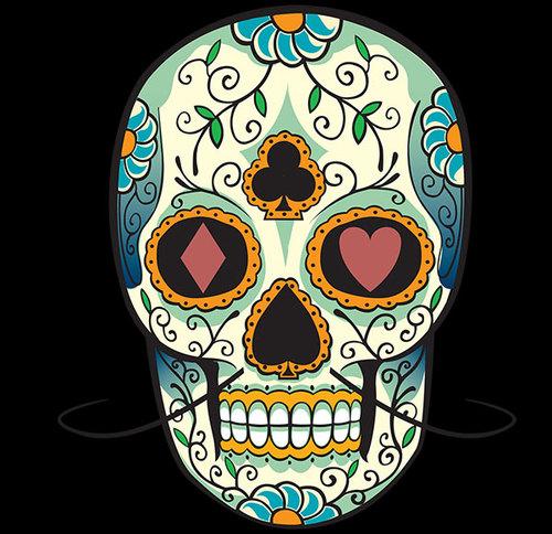 A caveira, também chamada de “Caveira de Açúcar”, é um símbolo popular usado em máscaras, para esta celebração e no princípio, tinha a função social de demonstrar que não tinha diferenças entre os ricos e o pobres, pois perante a morte todos somos iguais.