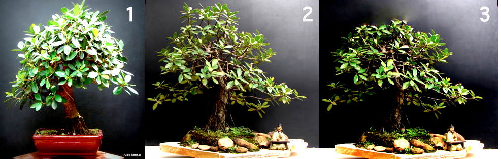 Ficus retusa em 3 etapas de modelagem.