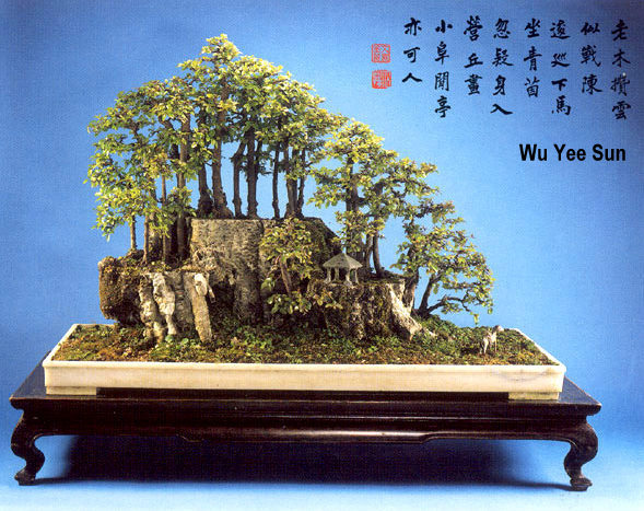 Embora eu tenha colocado a galeria de Penjing aqui com os estilos de bonsai. O Penjing é uma arte individual com seu surgimento na antiga China. O Penjing pode ter dado origem a arte do Bonsai. Paisagens com pedras simulando montanhas em bandejas tem suas origens na China e na India há 1.500 anos atrás.