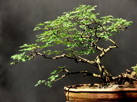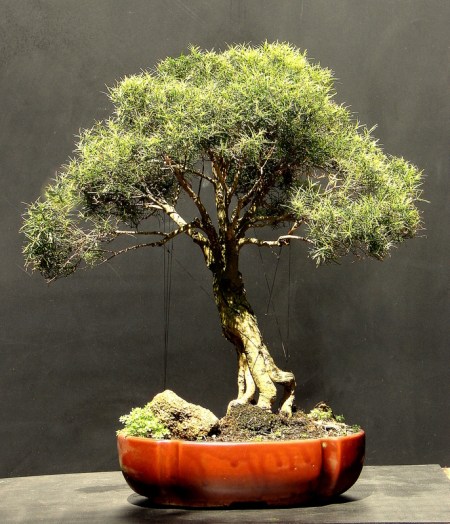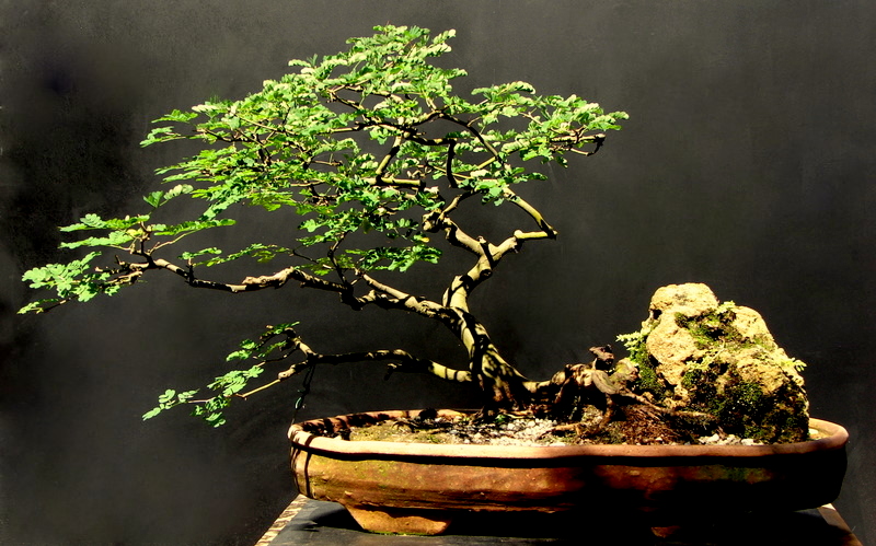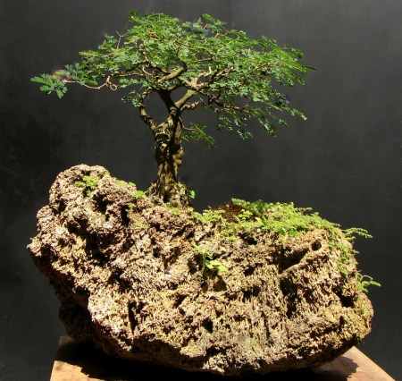 9- Penjing com pithecolobium thortum . Altura do Bonsai 42c – Largura da copa do Bonsai 33cm. Plantado em poliqueta, jogada pelo mar de Itaipuaçu em 1980.