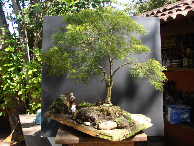 Esse trabalho vai ser transferido em janeiro para um suiban de madeira onde será adicionado mais dois bonsais e 5 pedras.