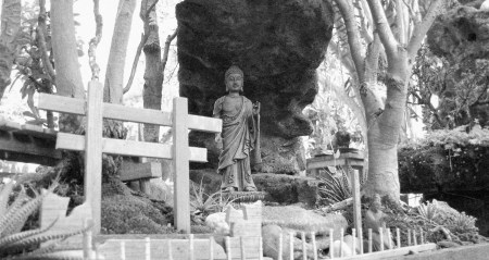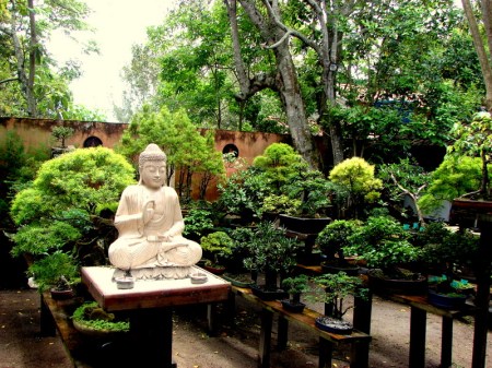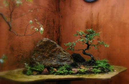 Aido Bonsai a noite. Ao fundo Tokonoma com Buda, Boken e Guardiões.